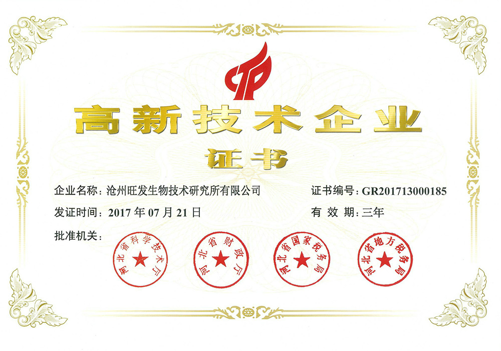 滄州旺發(fā)生物技術研究所有限公司創(chuàng)立于1993年,是集研發(fā)、生產(chǎn)、銷售于一體的微生態(tài)制劑生產(chǎn)“高新技術企業(yè)”、“國家知識產(chǎn)權優(yōu)勢企業(yè)”、“河北省農(nóng)業(yè)產(chǎn)業(yè)化重點龍頭企業(yè)”、“河北省創(chuàng)新型中小企業(yè)”、“河北省專精特新中小企業(yè)”,目前,公司注冊資金1360萬元,生產(chǎn)占地80畝,擁有液、固態(tài)結合全自動發(fā)酵生產(chǎn)線及標準化全自動液態(tài)發(fā)酵、噴霧干燥生產(chǎn)線。
